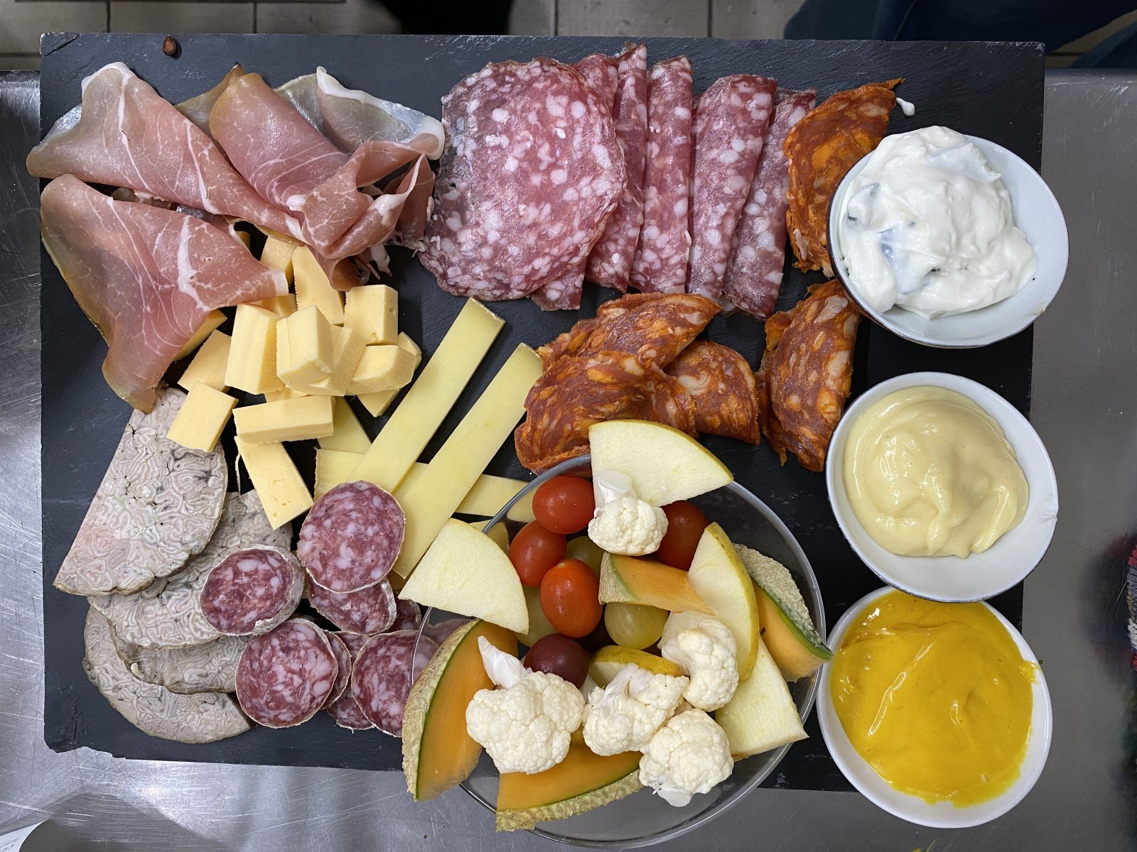 Pizza, Salate, Fleischgerichte, Burger mit Meeresfrüchten. Meeresfrüchteplatte auf Bestellung.